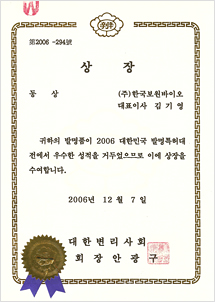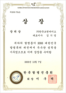 Bronze prize in 2006 Korea Invention Patent Exhibition Noble G Plus Toothpaste