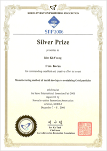 Bronze prize in 2007 Korea Invention Patent Exhibition (silver toothpaste)
